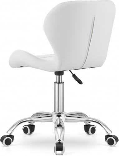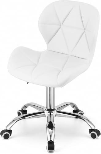 Reyad Group, - Reyad Group NMK HOME Velvet Desk Chair – White Upholstered Padded Seat, Chrome Base, Designer Geometric Stitching, Modern Home or Office Comfort
