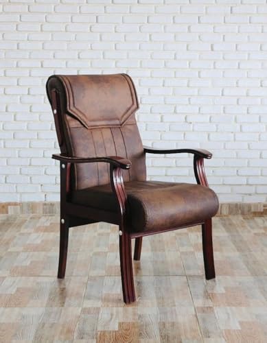 Reyad Group, - كرسي انتظار فرجينيا الرياض لمكتب المدير، مصنوع من جلد بني هافانا وإطار من خشب الزان، وإمالة ثابتة ونمط تقليدي من رياض جروب، بني (Havana Brown)