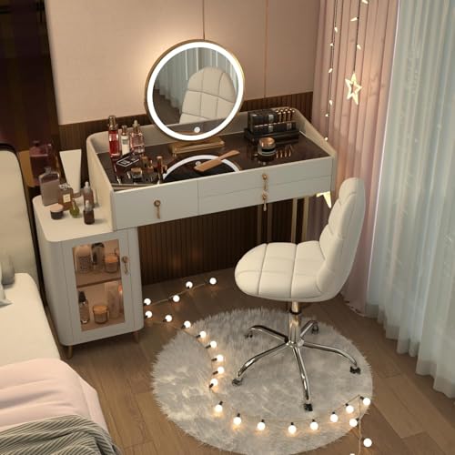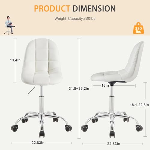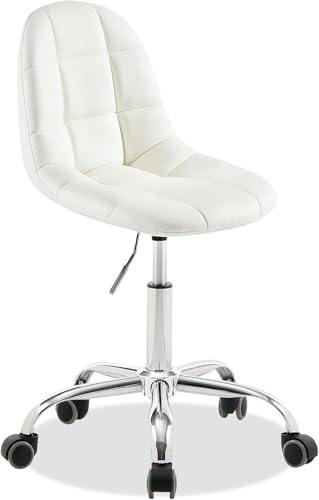 - Pearl white Vecelo armless PU swivels 360° adjustable.