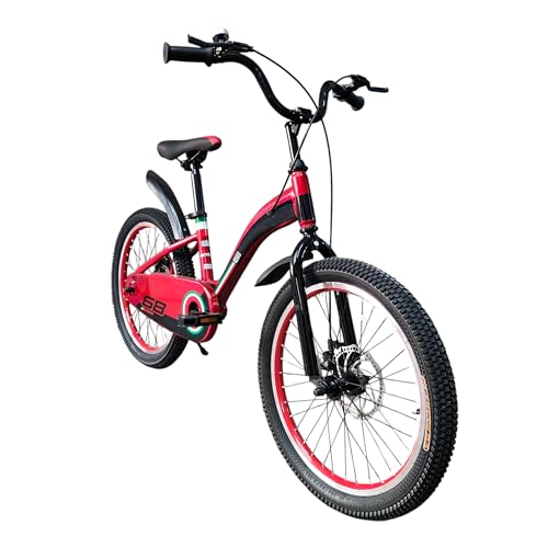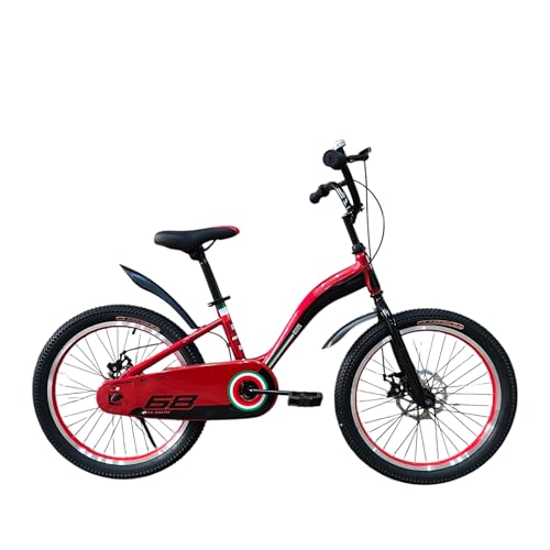 MOHAMED ABO ELGOUKH - دراجة أطفال ار اف 20 بوصة/51 سم بإطار صلب وفرامل قرصية للأولاد والبنات من سن 6 الى 10 سنوات - مع غطاء للسلسلة من أبو الجوخ وماكسليرز، لون أحمر