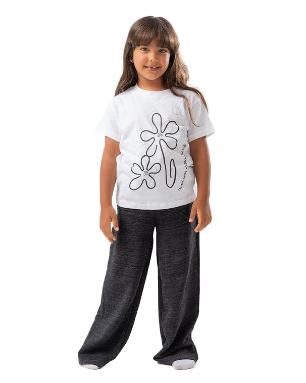 RFA - بدلة رياضية للبنات بتصميم زهور من ار اف ايه مصنوعة من قماش ناعم وجيد التهوية، لعمر 4 سنوات، ابيض ورمادي