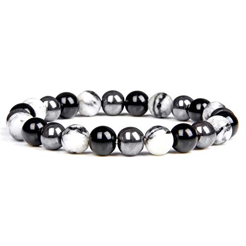 Generic - سوار خرز بودا للرجال، اساور حلقية مصنوعة يدويا من الاحجار الطبيعية الرمادية لتخفيف التوتر والتأمل واليوجا للرجال