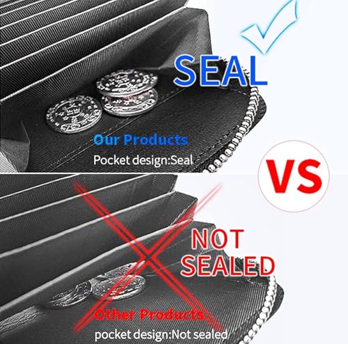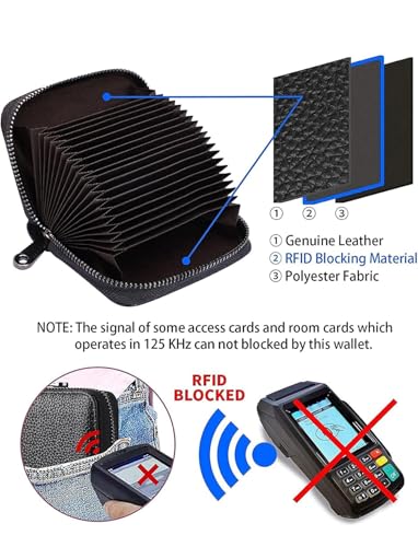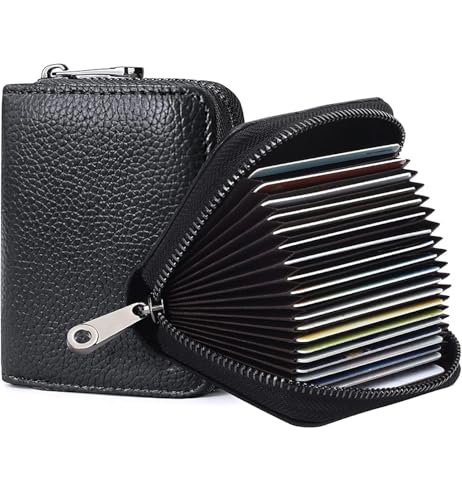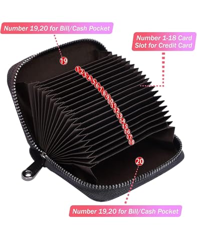 Generic - RFID Blocking Leather Card Holder Wallet, 20 Card Slots, Accordion Style with Zipper, Black. محفظة حامل بطاقات الائتمان و النقود، 20 فتحة بطاقة