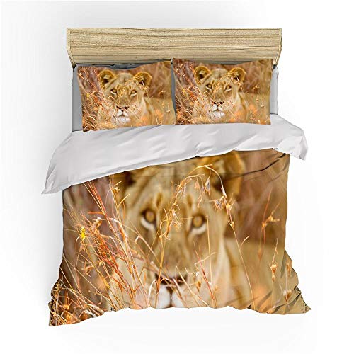 RFXSJY - 3D Duvet Cover Sets Lion Animal Kids Girls Boys Hotel Bedroom Bedding With Zipper Closure Soft Easy Care 220X240Cm(1 Duvet Cover + 2 Pillowcases)