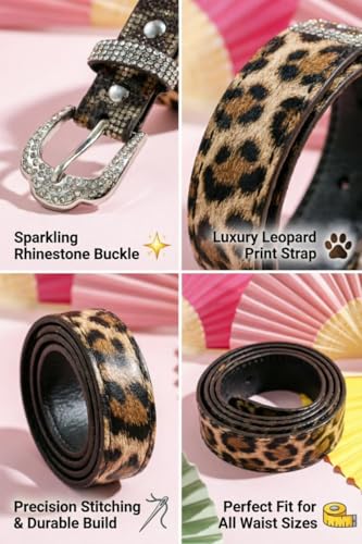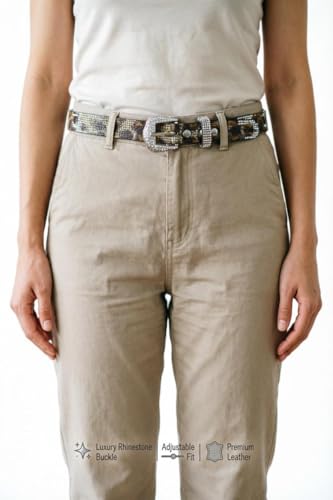 Generic - حزام مرصع باحجار الراين - حزام مسطح انيق للنساء يتميز بألماس قوس قزح لامع ومشبك دبوس أنيق، مثالي لارتداء الجينز أو التنانير