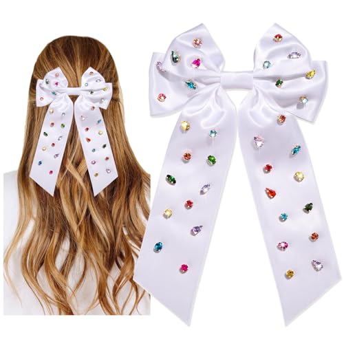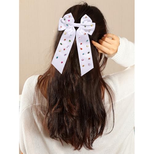 mokkia - Rhinestone Hair Bows for Women White Jeweled Hair Bow Clips Large Silky Satin Hair Bows Sparkling Crystal Hair Ribbons Fashion Hair Accessories Birthday Prom Wedding Christmas Holiday Gifts (White 2)