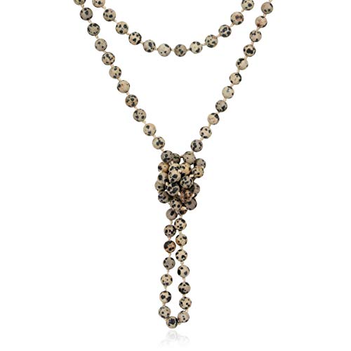 RIAH FASHION - RIAH FASHION Bead Strand Versatile 60" Long Wrap Necklace - Handmade Knotted Multi Layer Sparkly Crystal, Semi Precious Natural Stone, Lava, Glass Faux Pearl, Lava Beads Crystal Beads, not known,