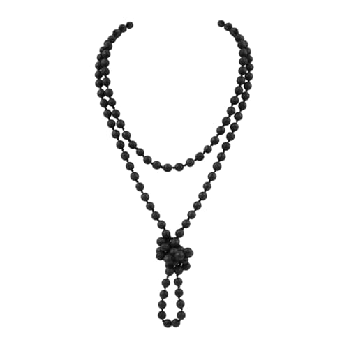 RIAH FASHION - RIAH FASHION Bead Strand Versatile 60" Long Wrap Necklace - Handmade Knotted Multi Layer Sparkly Crystal, Semi Precious Natural Stone, Lava, Glass Faux Pearl (Natural Stone Bead - Lava Black)