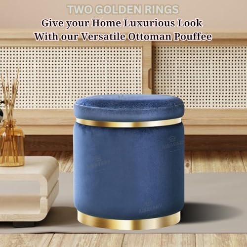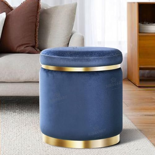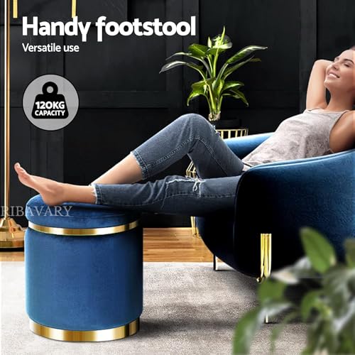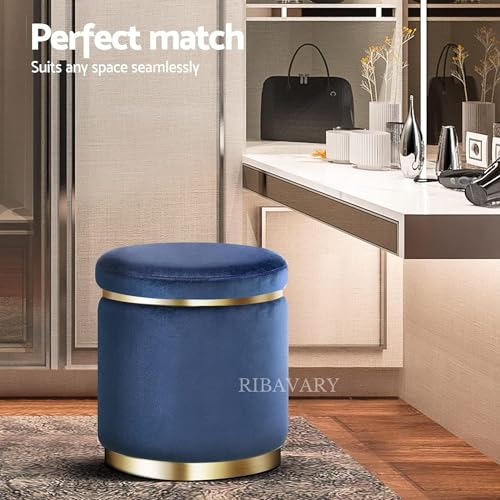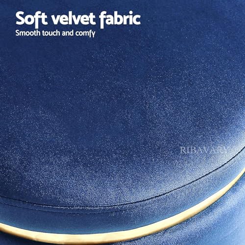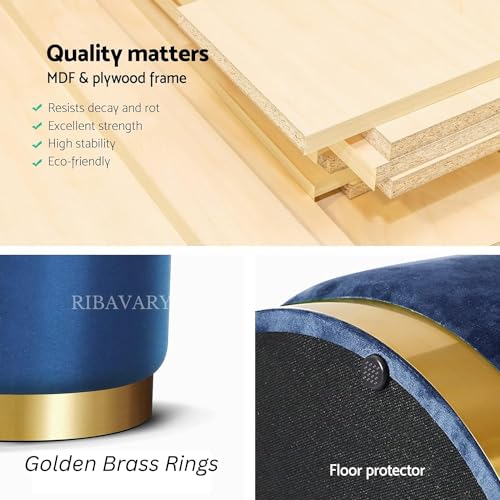 RIBAVARY - مقعد جلوس فاخر مخملي من ريبافاري لغرفة النوم وغرفة المعيشة، مقعد جانبي للكنبة، مقعد خشبي صغير مسند للقدمين، كرسي مكياج، وسادة للمكتب وديكور المنزل (طبل، ازرق ملكي)