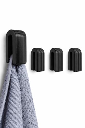 Generic - مجموعة خطافات حائط مضلعة (عبوة من 3 قطع) - شماعة بسيطة للمناشف والمعاطف - منظم متعدد الاغراض للحمام والمطبخ والمنزل - متوفر ببراغي او شريط لاصق (3، اسود، شريط مزدوج الوجهين)