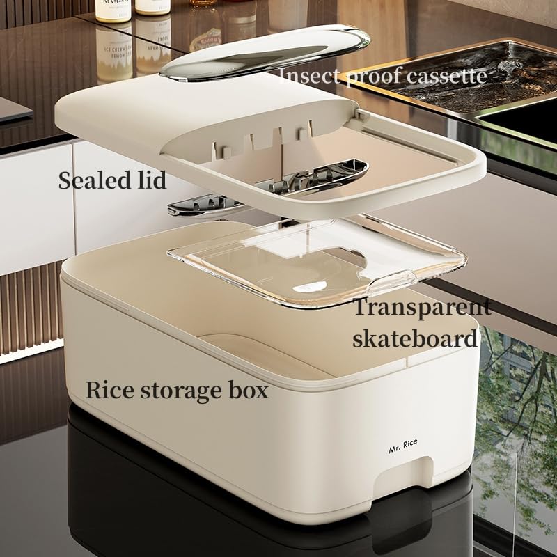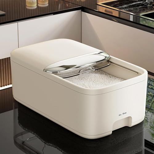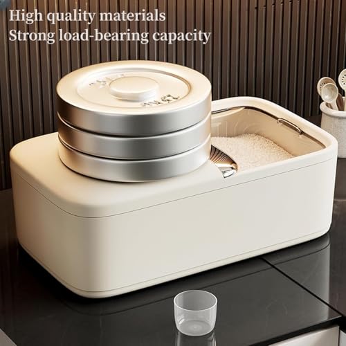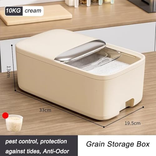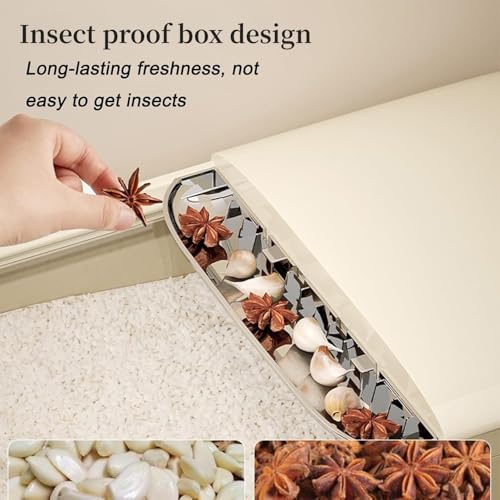 - 【Well Made】The rice container paired with classic beige and sleek look make it suits a variety of home style,Its compact design of barrel body(allows for easy organization and storage in the kitchen without occupying too much space,it will become a good helper in your life.
