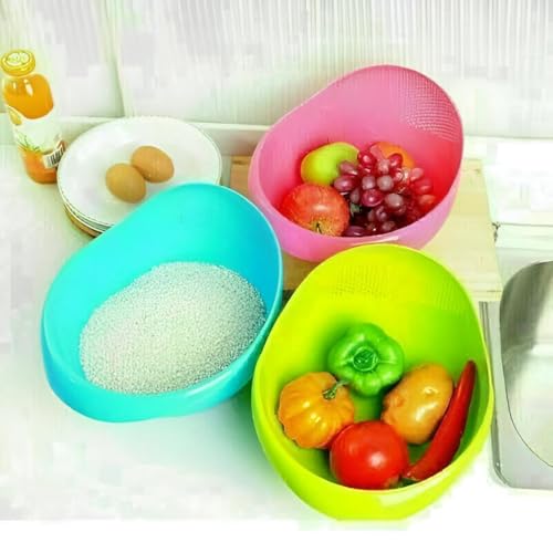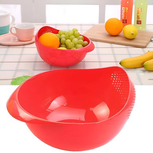 Generic - بولة بمصفاة للأرز من البلاستيك متينة وغير قابلة للكسر بنظام تصريف مدمج مثالية لشطف الخضروات والفواكه للاستخدام بسهولة في المطبخ، (أحمر)