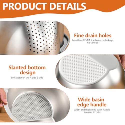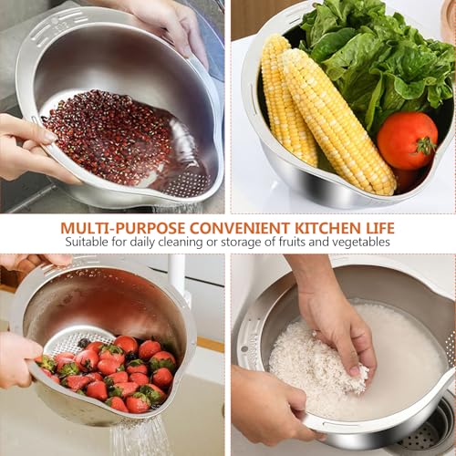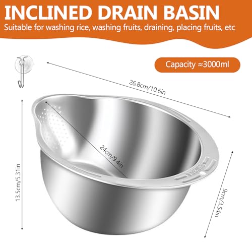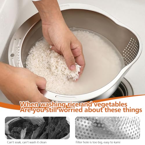 SNSYGN - Rice Washing Bowl, 304 Stainless Steel Rice Strainer with Spout, Food-Safe Rice Washing Bowl for Draining & Washing Rice Fruit Vegetables Quinoa and Noodle