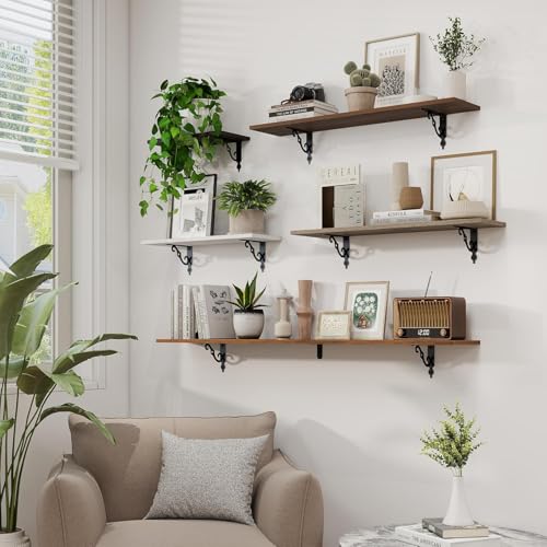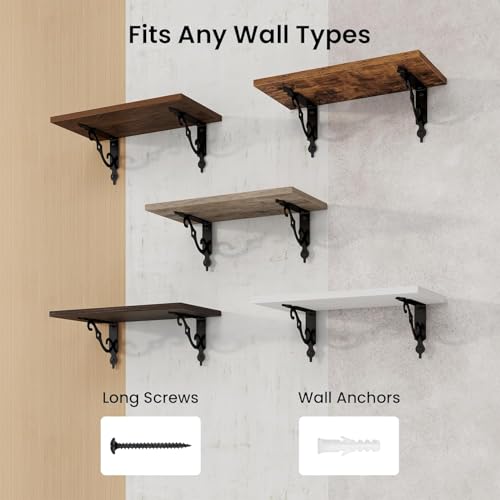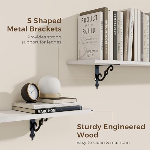 - Well-designed floating shelves: Rustic deep floating shelves are made of high-quality grain board and sturdy brackets. The classic S-shaped metal supports are designed to prevent sagging and ensure long-lasting stability. All edges are carefully polished for a smooth finish