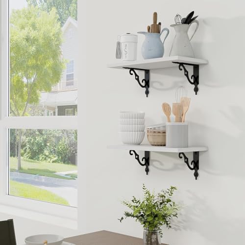 - PERFECT HOME DECORATION: This rustic-style wooden shelf fits in vintage style home decor, rustic wood grain, and gorgeous S-shaped brackets will make your home full of modern romance. Our floating shelf make full use of the wall, make your room and bathroom look very nice
