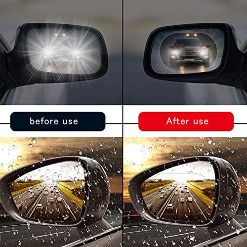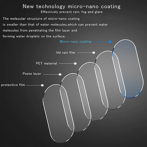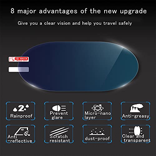 - 【يمكنك الحصول على]】4 غشاء مقاوم للمطر لمرايا الرؤية الخلفية. نحن الآن على وشك الدخول في موسم الأمطار والضباب الشديد في الصباح والمساء، لذلك تحتاج إلى وضع طبقة مقاومة للمطر على مرآة الرؤية الخلفية، لتحصل على رؤية واضحة وتتمكن من السفر بأمان. صُنع من مادة البولي يوريثين الحراري التي تتميز بشفافية ووضوح فائقين وتتميز بتأثير عرض جيد، كما أنها غير سامة وعديمة الرائحة وتتمتع بدرجة نظافة جيدة ومقاومة للخدش والتآكل وتمنع الانعكاس.