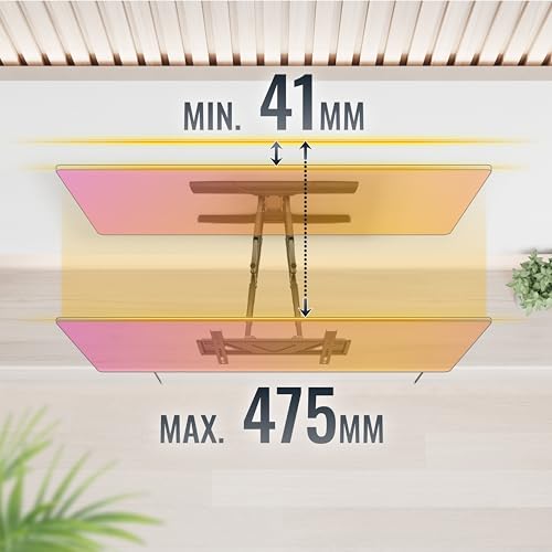 - الوظيفة: يمكن تدوير حامل التلفزيون هذا حتى 120 درجة حسب عرض الشاشة. نطاق الإمالة هو +15/-7 درجة. المسافة من الجدار بين 41 ملم - 475 ملم. للتعديل الأمثل بعد التركيب، يمكن تدوير اللوحة الأمامية +/-3 درجات
