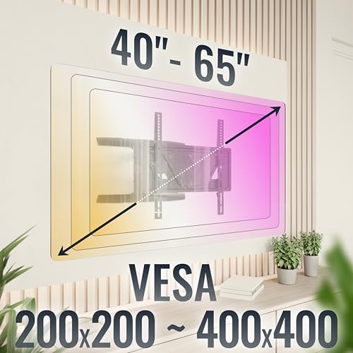 RICOO - حامل تلفزيون بريميوم يثبت على الحائط، قابل للدوران والامالة (S9544) مقاس يونيفرسال 32-65 بوصة (حتى 45 كجم، ماكس فيسا 400 × 400) لشاشة LCD OLED منحنية من ريكو