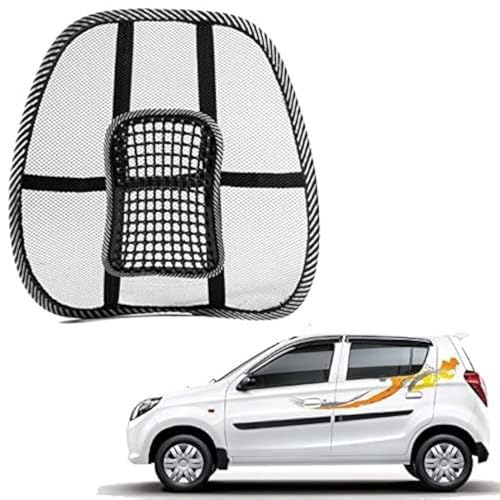 RIDERSCART - مسند ظهر مريح لتخفيف الام منطقة اسفل الظهر من رايدرسكارت، مناسب لكرسي المكتب والمنزل وسيارات سوزوكي ماروتي التو، اسود، قطعة واحدة، نايلون