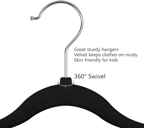 - 👶Sturdy Childrens Hangers: Kid hangers clothing are made of safe and odorless high-quality materials, which can hold a heavy weighted clothing. Kids hangers velvet are feature a shiny chrome hook with 360-degree swivel, which meet your needs from different angles, making it easier to organize clothes.