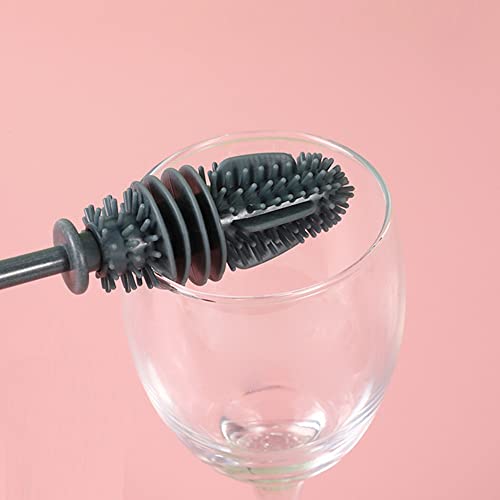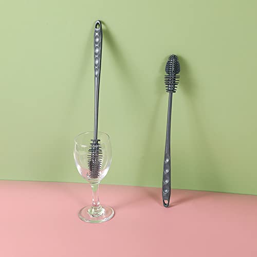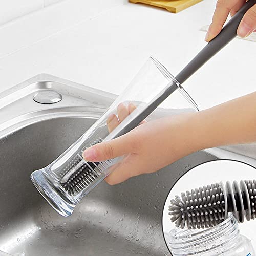 Spaceshoop - RIIPOO Long Handle Bottle Brush, Silicone Glass Cup Cleaning Brush for Water Baby Bottles, Thermos, Hydro Flasks, Coffee Mugs, 10.6 Inch