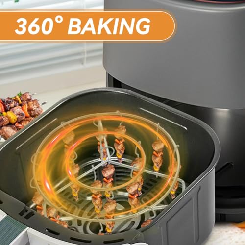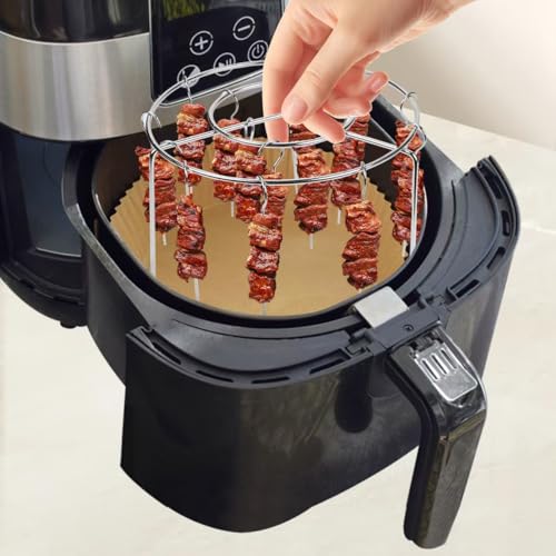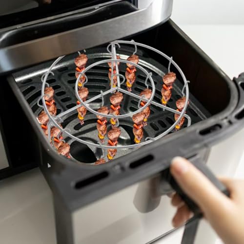 Rimigood - شواية مقلاة هوائية من ريميجود، سيخ عمودي للقلاية الهوائية، مع 24 اسياخ، اسياخ مقلاة هوائية 6 انش، رف اسياخ شواء من الستانلس ستيل