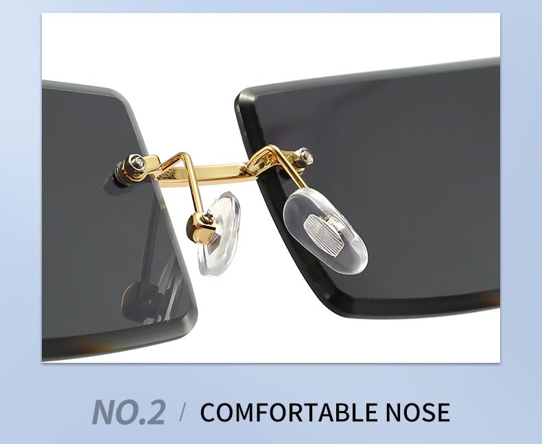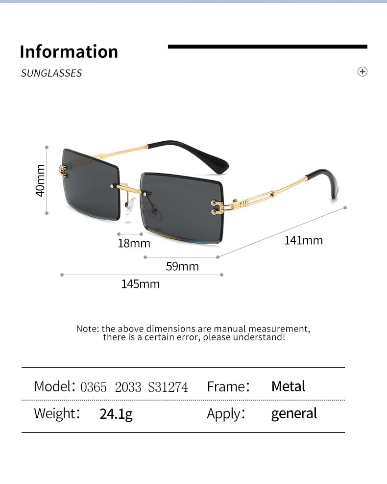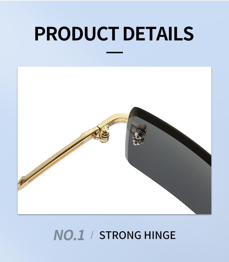 GQ - Rimless Rectangle Sunglasses for Women Men Vintage Shades Fashion Frameless UV400 Protection Lens Sun Glasses