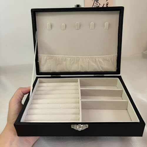 - 6. With its space-saving size, this jewelry organizer features 2 trays that elegantly hold necklaces, bracelets, rings, and earrings in one neat location. Its compact design makes it suitable for daily use while looking great on any dresser or shelf, maximizing both functionality and aesthetics.