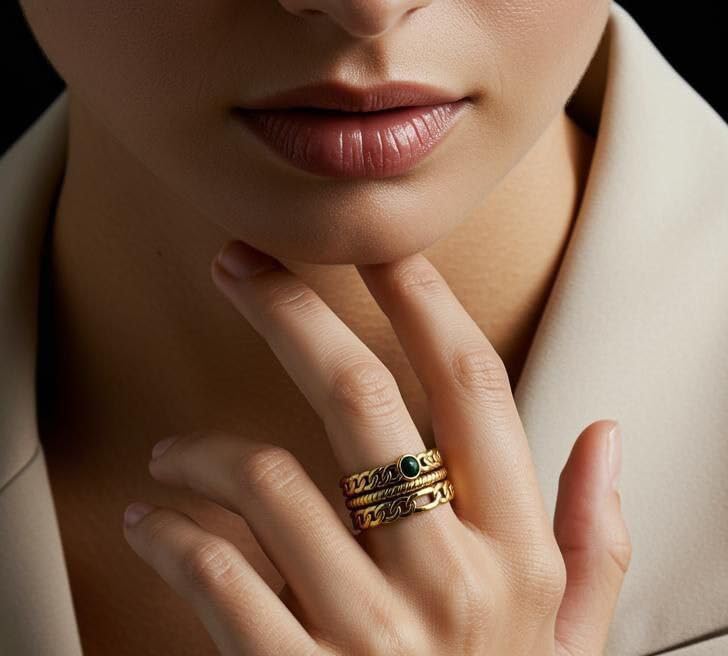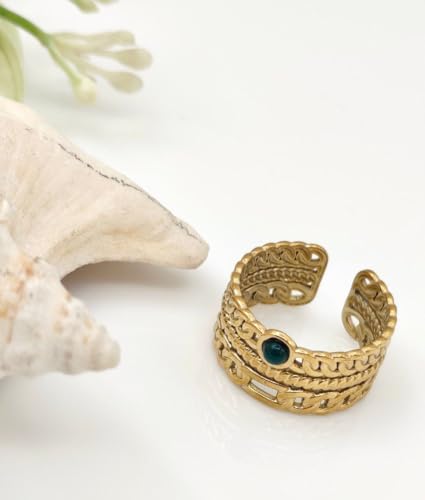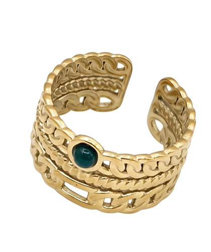 Generic - خاتم من الستانلس ستيل مطلي بالذهب عيار 18 قيراط بتصميم كوري مناسب كهدية للنساء والزوجة والعشاق وافراد العائلة والاخت الصالحة والاخت الصالحة والاخت الصالحة