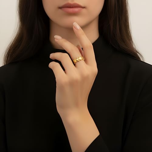 Generic - Ring C a r i n a And Style Gift For Women Birthday Fashion Day Wife Lover Family Member Good Sister Girlfriend Stainless Steel 18K gold Plated - Opening Adjustable