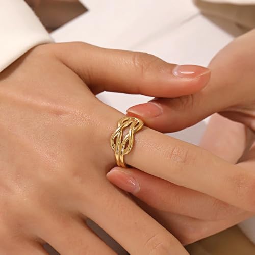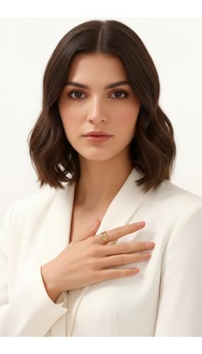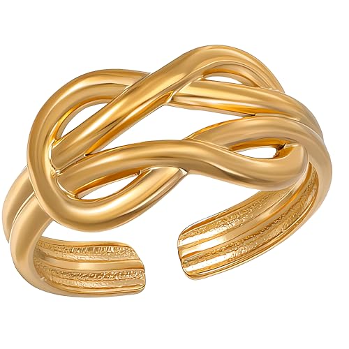 Generic - خاتم جيلي بين اند ستايل هدية عصرية للنساء والزوجة والحبيب وافراد العائلة والأخت الطيبة والصديقة من الستانلس ستيل مطلي بالذهب عيار 18 قيراط وعيد الحب - فتحة قابلة للتعديل