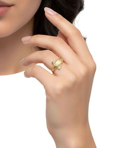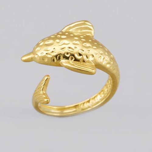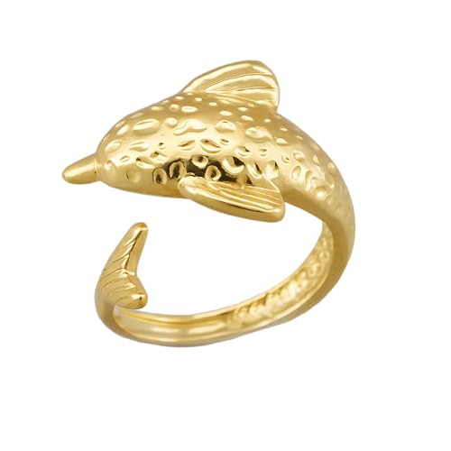 Generic - خاتم بتصميم دولفين وهدية انيقة للنساء والزوجة والحبيب وافراد العائلة والأخت الصالحة والصديقة من الستانلس ستيل مطلي بالذهب عيار 18 قيراط - فتحة قابلة للتعديل
