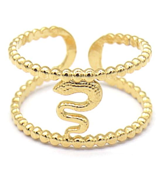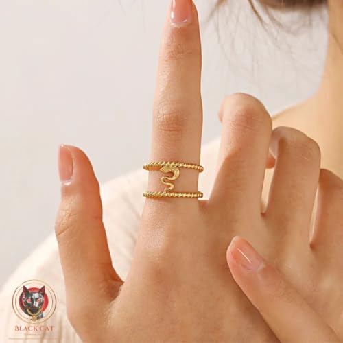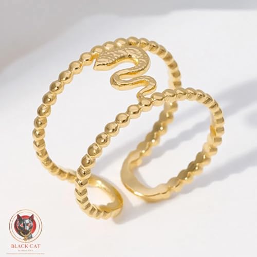 Generic - خاتم مزدوج مع ثعبان من الستانلس ستيل مطلي بالذهب عيار 18 قيراط للنساء هدية رائعة للصداقة - قابل للتعديل
