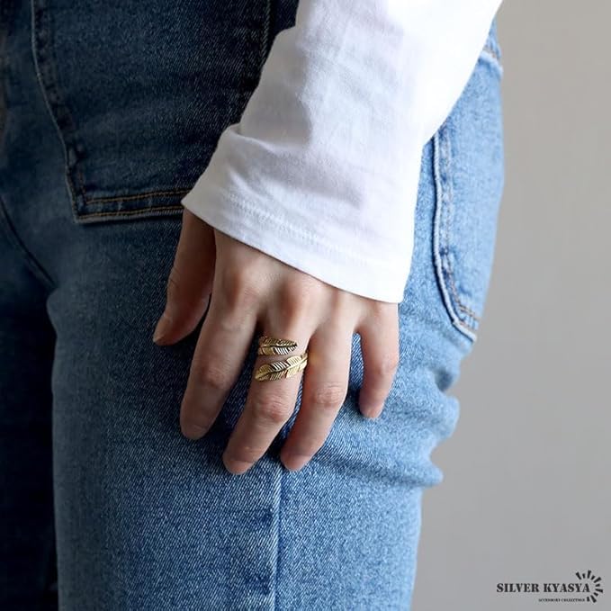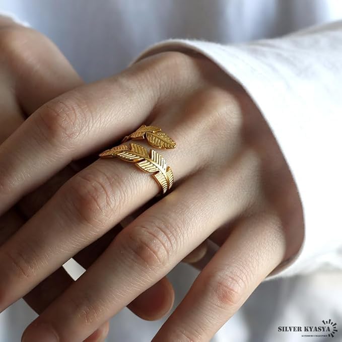 Generic - Ring Feather Double Symbolizing Freedom And Grace Stainless Steel 18k Gold Plated Women - Adjustable