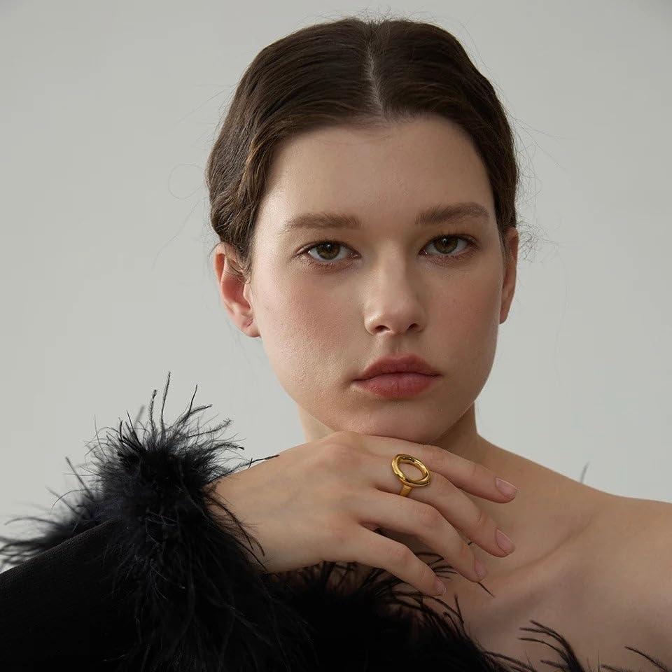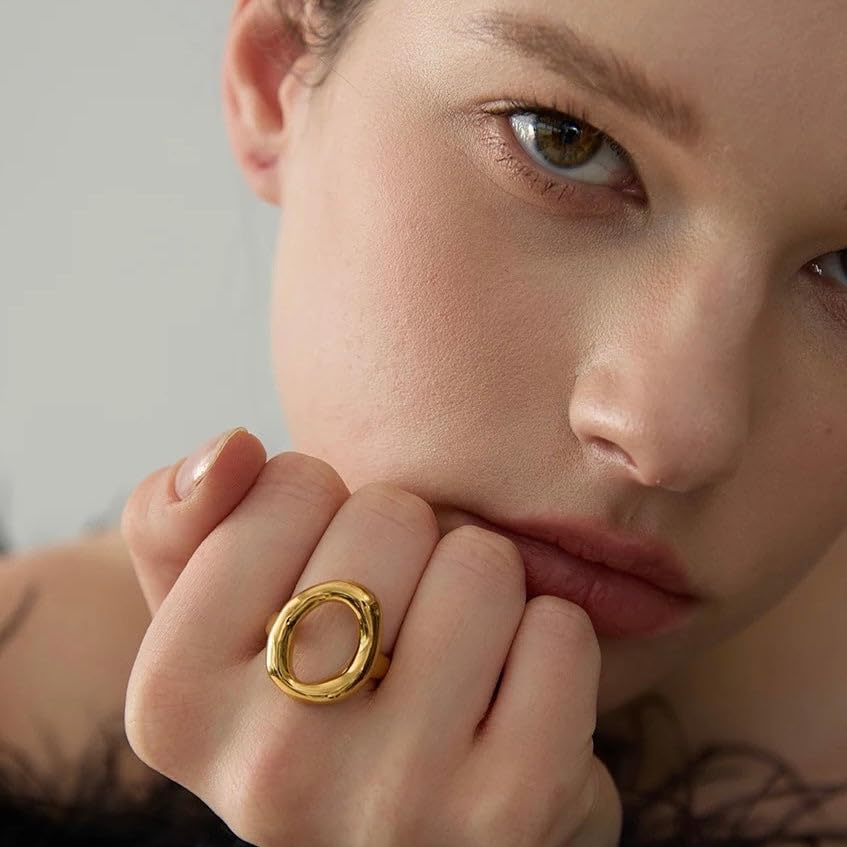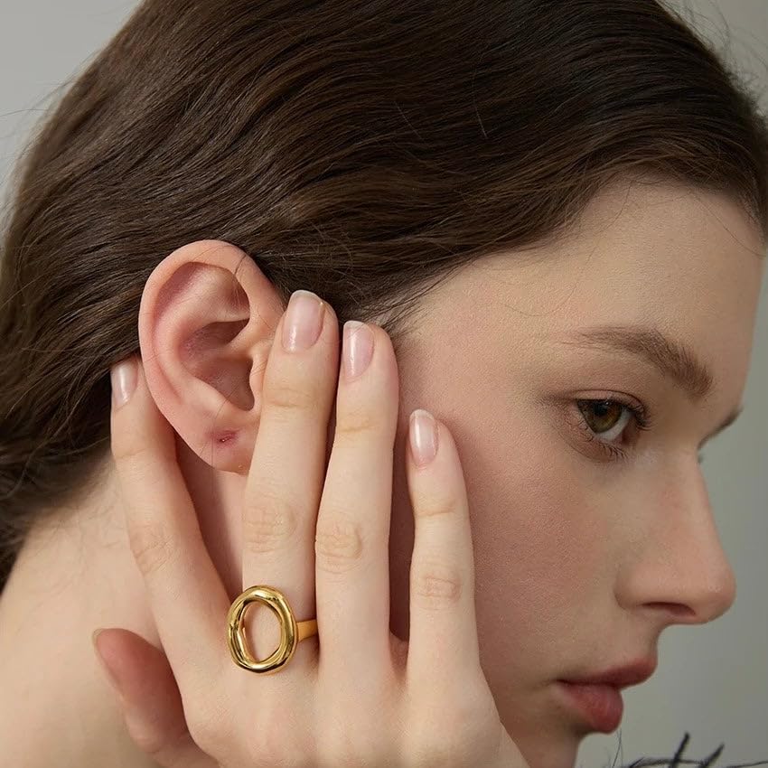 Generic - Ring Geometric Oval Cut Out Stainless Steel Woman - (Size7) Plated Gold