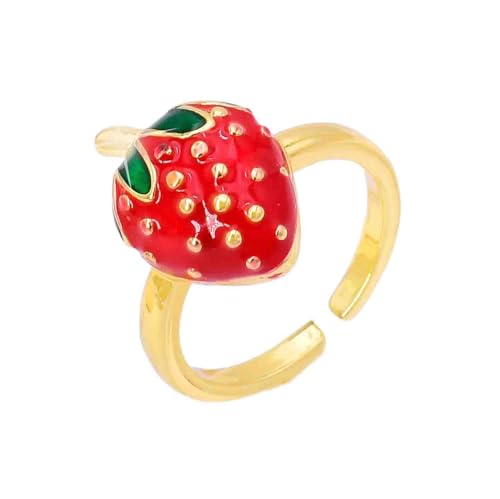 Generic - خاتم بتصميم فراولة من الستانلس ستيل مطلي بالذهب عيار 18 قيراط - مقاس قابل للتعديل