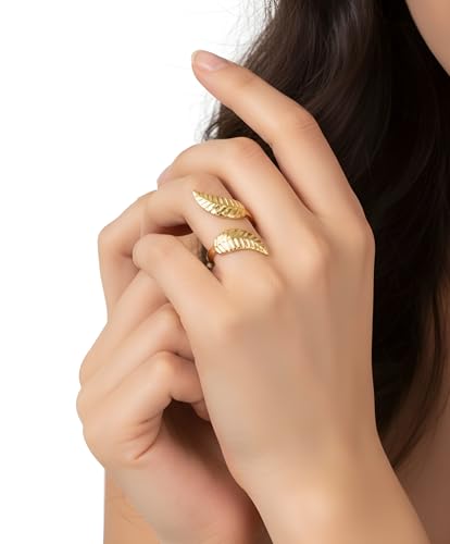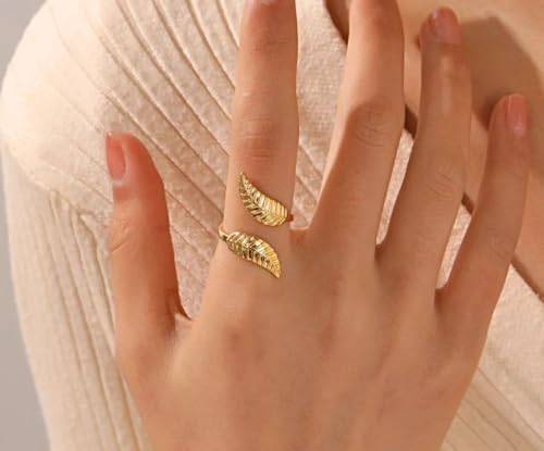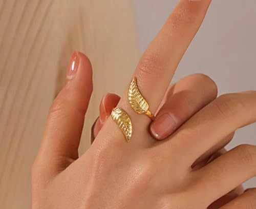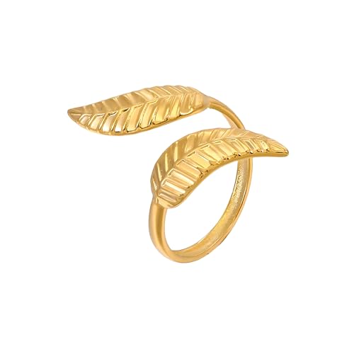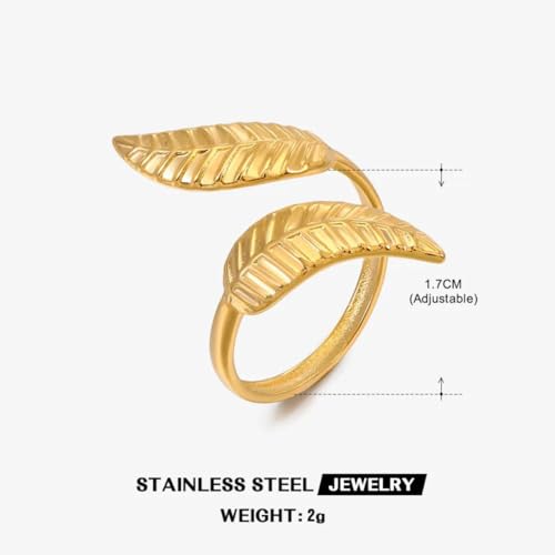 Generic - Ring Leaves Ginkgo and Style Gift For Women Birthday Christmas Fashion Day Stainless Steel 18K gold Plated Valentine's Day Mother's Day - Opening Adjustable