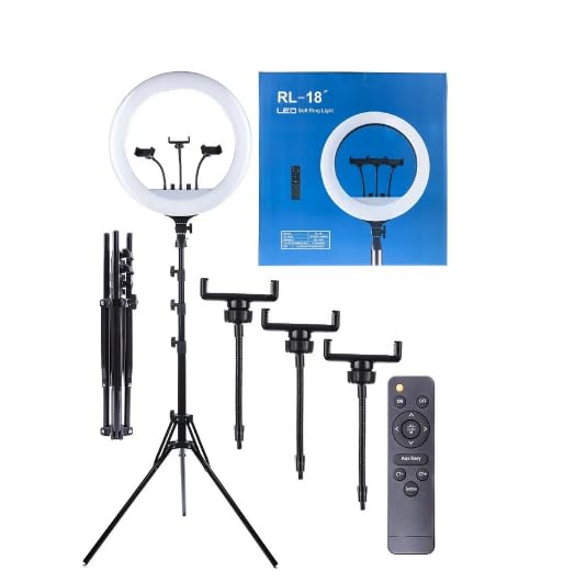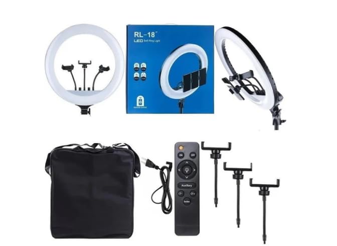 Generic - Ring Light RL-18 LED Light with 2m,Bag and 3 Phone Holder, Dimmable 3200-5600K with 3 Color Changing Compatible with Most Cameras and Smartphones Perfect for Photography and Live Broadcasting.