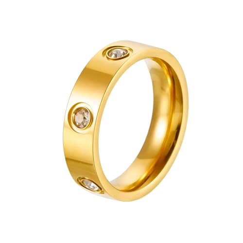 Generic - خاتم لولا III مرصع بحجر الزركونيا المكعب هدية للنساء والزوجة والحبيب وافراد العائلة والصديقة من الستانلس ستيل مطلي بالذهب عيار 18 قيراط - خاتم مقاس 17