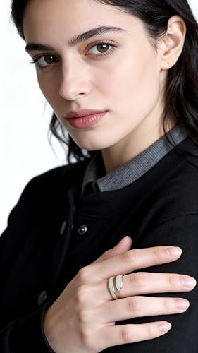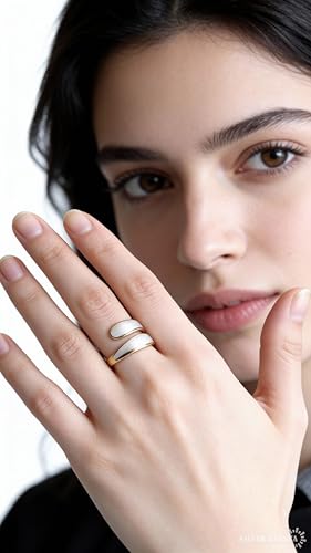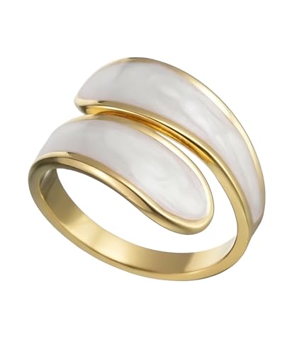 Generic - خاتم ام اي اف اي ان مطلي بالذهب عيار 18 قيراط مصنوع من الستانلس ستيل مطلي بالذهب عيار 18 قيراط ومينا ابيض ونمط كوري للنساء