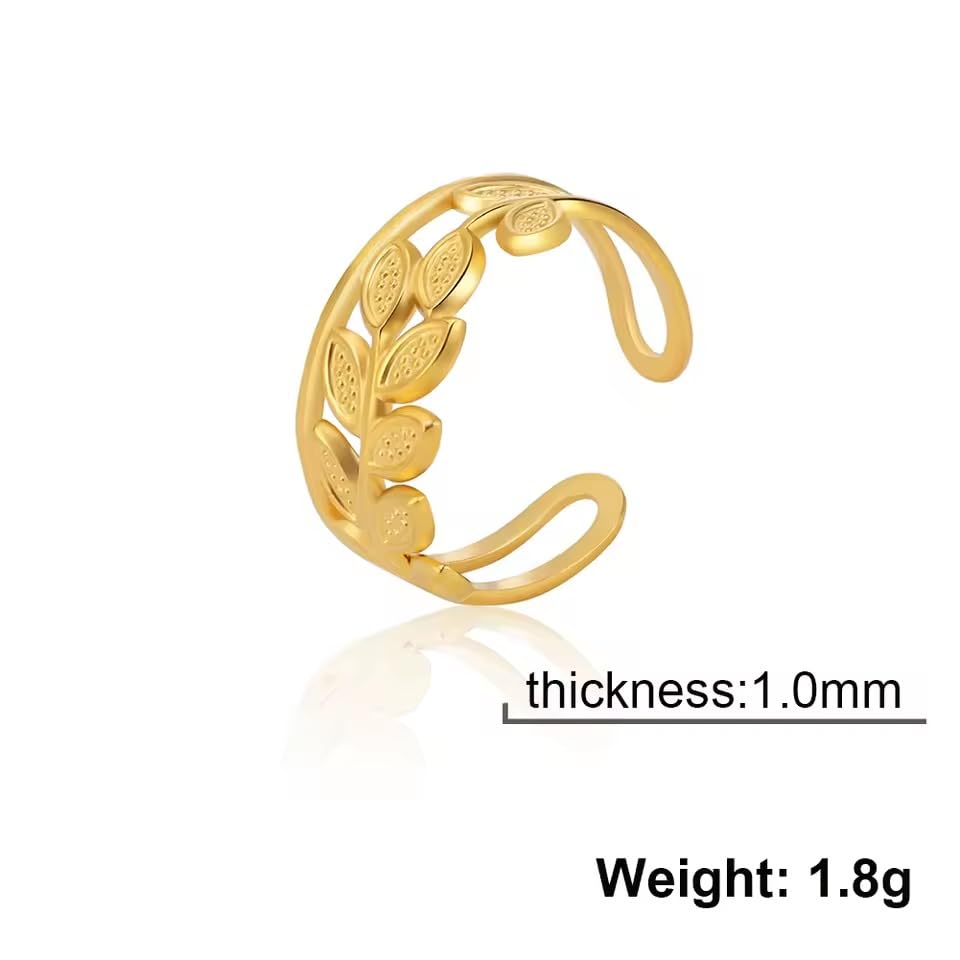 Generic - خاتم غصن الزيتون هذا الخاتم يرمز إلى السلام والازدهار من الستانلس ستيل المطلي بالذهب عيار 18 قيراط للنساء - قابل للتعديل