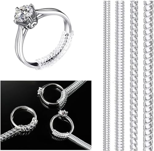 Generic - Ring Size Adjuster for Loose Rings Invisible Transparent Silicone Guard Clip Noodle Jewelry Tightener Resizer 4 Sizes Fit Almost Any Ring 4 Pieces Set