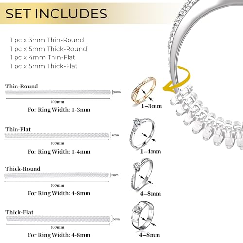 Aurum And Adorn - اداة ضبط مقاس الخاتم للخواتم الفضفاضة - مشد الخواتم - واقي خواتم غير مرئي للنساء والرجال - 4 مقاسات لعرض السوار المختلف