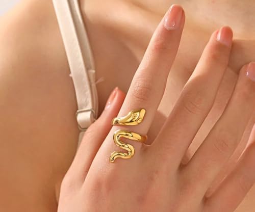 Generic - Ring Vintage Snake and Style Gift For Women Birthday Christmas Fashion Day Wife Lover Family Member Good Sister Girlfriend Stainless Steel 18K gold Plated Valentine's Day Mother's Day - Opening Adj