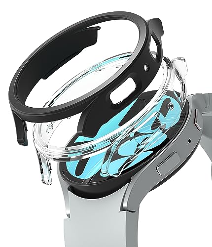 Ringke - رينجكي جراب رفيع [مادة مضادة للاصفرار / عبوتين] متوافق مع ساعة سامسونج جالاكسي 6 (40 ملم) غطاء شفاف صلب خفيف الوزن + لون اضافي للنساء والرجال - شفاف واسود مات، بولي كربونات