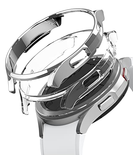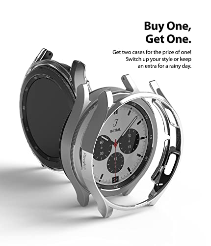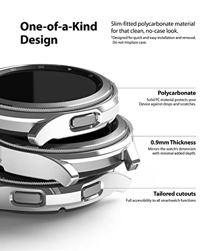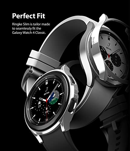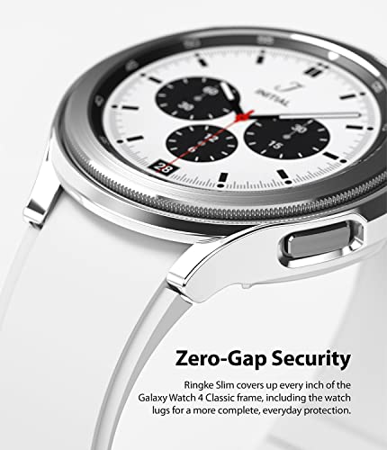 Ringke - Ringke Slim Case [2 Pack] Compatible with Galaxy Watch 4 Classic 42mm, Watch 4 Bezel [Frame Only] Premium PC Hard Thin Cover - Clear & Chrome