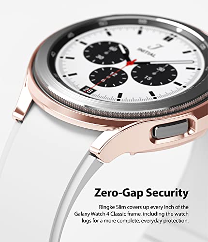Ringke - Ringke Slim Case Compatible with Samsung Galaxy Watch 4 Classic 42mm (2 Pack) Premium Polycarbonate Hard Thin Cover [Frame Only] - Clear & Chrome Rose Gold (2 Pack)