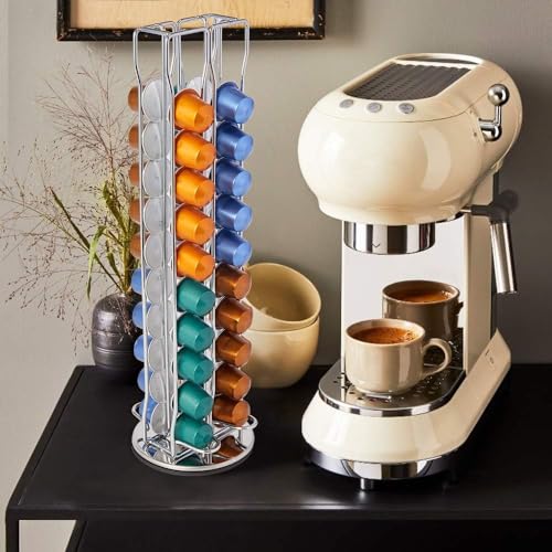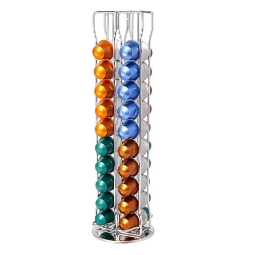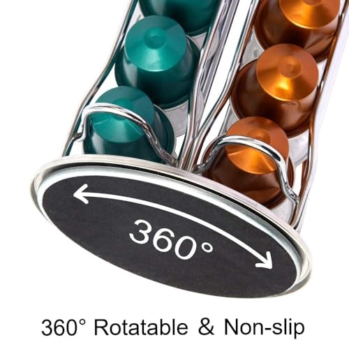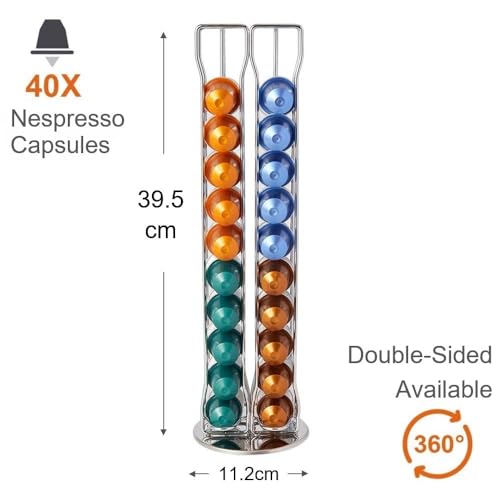 RIOVARM - RIOVARM Stand for Capsules Silver 40, Space-Saving Nespresso Capsule Holder Tassimo, 360° Rotatable and Non-Slip Capsule Stand, Available on Both Sides, Dolce Gusto Capsule Holder, Coffee Machine
