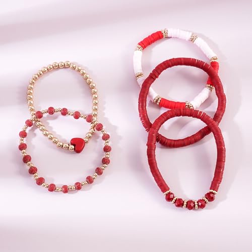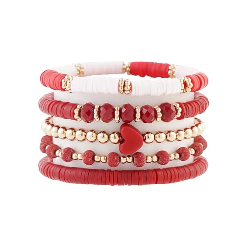 RISHEGAE - أساور خرز هيشي قابلة للتمدد للنساء من ريشيجاي للتكديس طين البوليمر الذهبي الصداقة والشاطئ الصيفية مجموعة مجوهرات