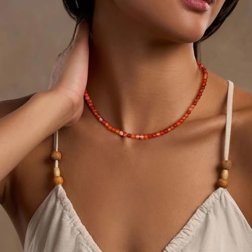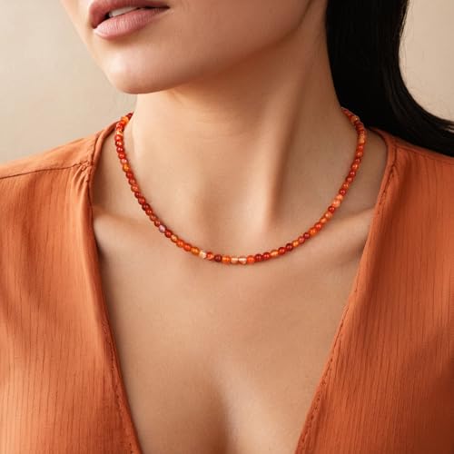 Risyfjew - عقد كريستال 4 ملم للنساء من ريزيفجيو، مصنوع يدويا من الزجاج البركاني الاسود مطرز بحجر الميلاد لشهر فبراير، قلادة من الحجر الطبيعي، مجوهرات كريستال هدايا للنساء